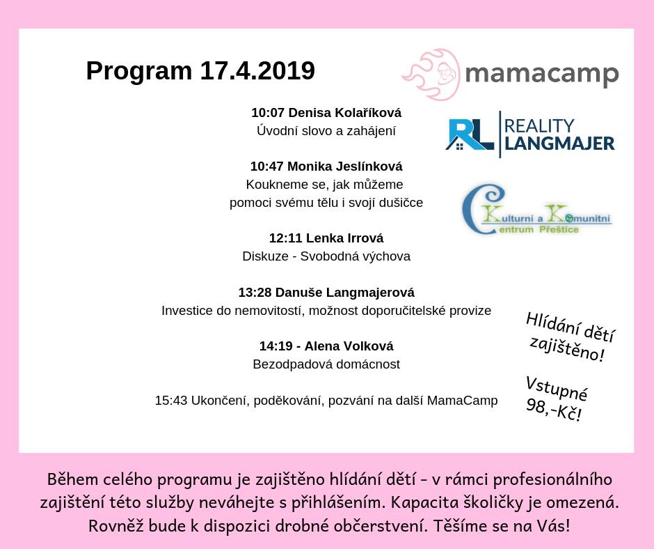 Rády bychom Vás srdečně pozvaly dne 17.4.2019 na mamaCamp do Přeštic.